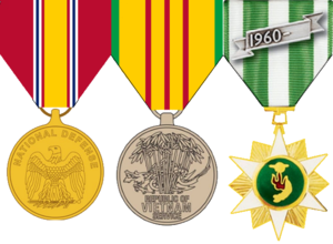 At the end of his two year's service in 1967 he returned home to the United States. Actually, since his mother was then living in Toronto, Canada due to his stepfather Don Clark's employment, he went there instead. Although it was a warm summer in Toronto, Duff had to wear sweaters because after the heat of Viet Nam, it was too cold for him -- at least until he acclimated to it. Duffy was honorably discharged at the rank of Private First Class (PFC), having received the following: