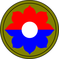 | current | 04:26, 4 July 2021 | 800 × 800 (69 KB) | Cyberherbalist (talk | contribs) | Shoulder patch of the US Army's 9th Infantry Division. The symbol of an 8-pointed flower comes from the heraldic cadency mark for a 9th son, called the "octofoil." |