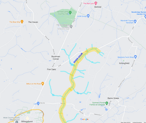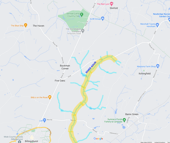 Map of the source branch of the River Adur. I'm still not sure which final branch is the "true" source!
